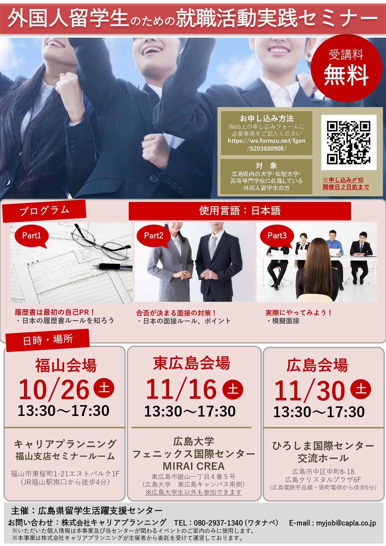 場所: キャリアプランニング福山支店 セミナールーム(福山市東桜町1-21エストパルク1F)